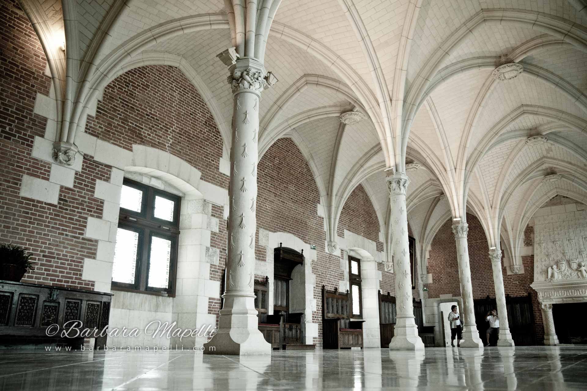 Anna di Bretagna, moglie di Carlo VIII, dopo il 1491, intraprese importanti lavori di rinnovamento del castello di Amboise. Chiamò a se numerosi artisti soprattutto italiani e divenne poi la più grande mecenate di quel secolo. Inizialmente iniziò con la costruzione delle mura di contenimento, successivamente con la realizzazione di edifici a nord e a sud. Venne terminata la costruzione dell’appartamento della Regina, detto delle Sette Virtù e in seguito, a nord, si realizzò l’Appartamento del Re.